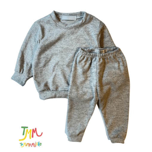 Conjunto de buzo y babucha lanilla gris