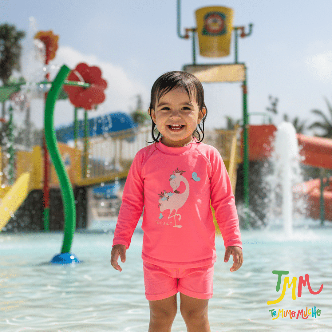 Remera manga larga con botoncito en el cuello animalitos rosa