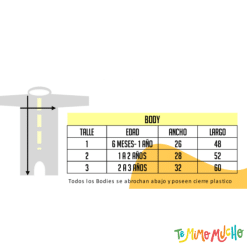 | Talle | Talle 1 -6 a 1 año, Talle 2 – 1 a 2 años, Talle 3 -2 a 3 años |