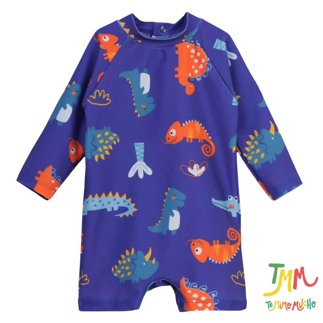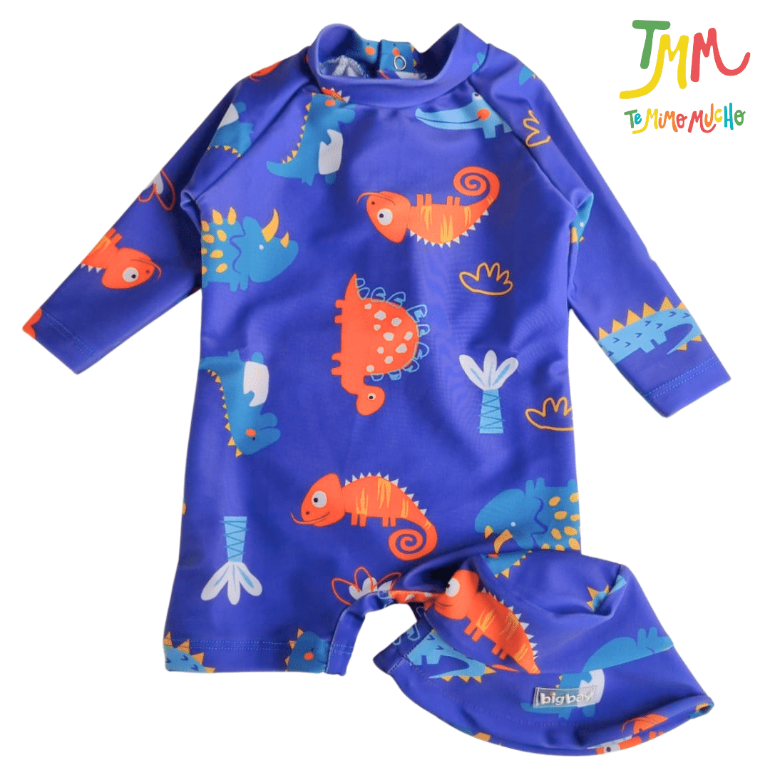 PROMO POR FALLA – SET ENTERITO+ PILUSO DE REGALO UV 50+ DINO AZUL Big Bay